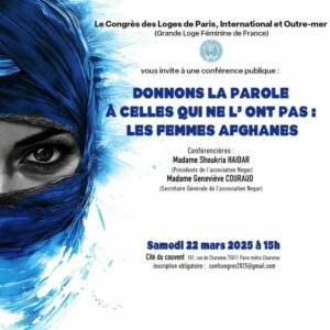 25 Mars 2025 – L’Haÿ-les-RosesNEGAR22 mars, 2025EVENEMENTS et ACTIONS en soutien aux Femmes d'Afghanistan Solidarité avec la résistance des femmes afghanes 20250325_204754 Image 1 parmi 6 Article précédent Donnons la parole à celles qui ne l’ont pas : les femmes afghanes Article suivant ROUEN, 29 mars 2025