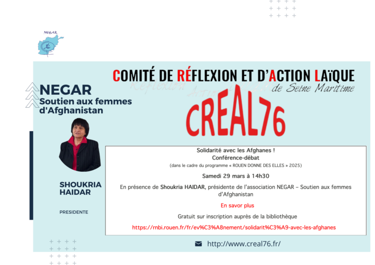 Le Congrès de Paris des Loges de Paris, International et Outre Mer vous invite à une conférence publique :Donnons la parole à celles qui ne l’ont pas : les femmes afghanes par Choukria HAIDAR et Geneviève COURAUD le 22 mars…